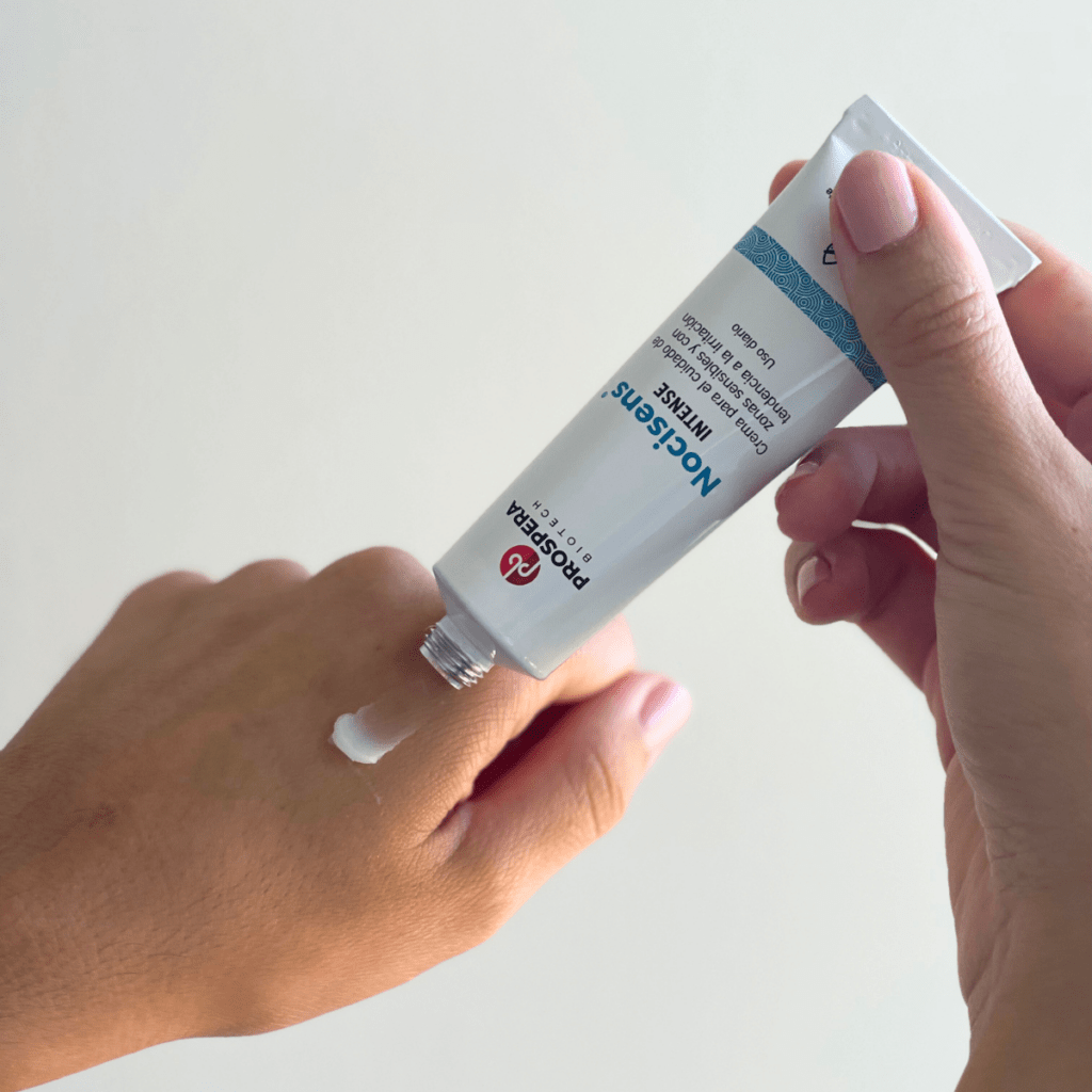 - Nocisens® INTENSE, en formato crema, está indicado para zonas de brotes recurrentes, como puede ser el eccema en la cara. Se puede aplicar en zonas tan delicadas como los párpados.