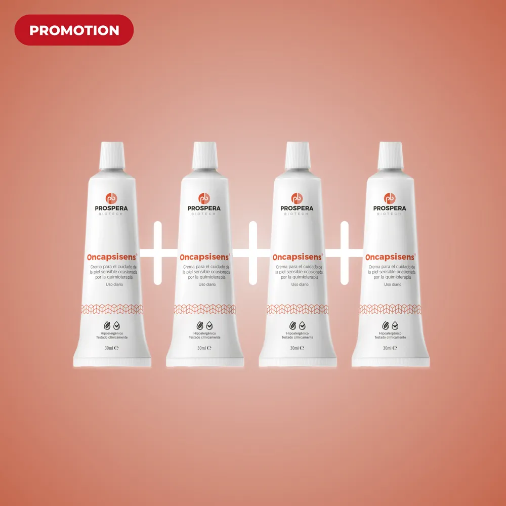 Oncapsisens® contiene ingredientes neurodermatológicos que ayudan a fortalecer el equilibrio y calmar las molestias típicas de pieles sometidas este tratamiento oncológico. Gracias a su innovador mecanismo de acción, fortalece la barrera cutánea y devuelve el equilibrio sensorial ayudando a reducir la sensibilidad.